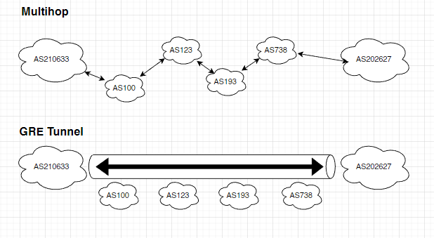 Gerne genutzt wird dabei ein Tunnel über GRE oder einfaches Multihop. Aber was ist nun dabei der Unterschied?